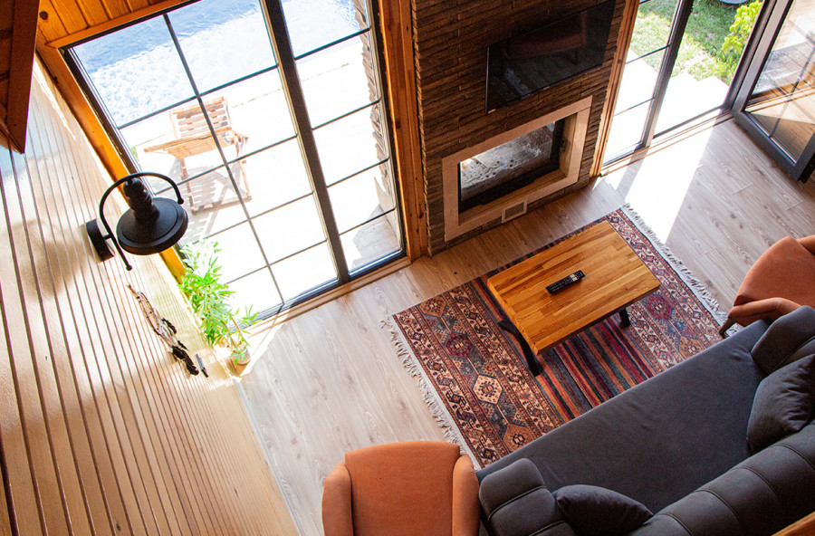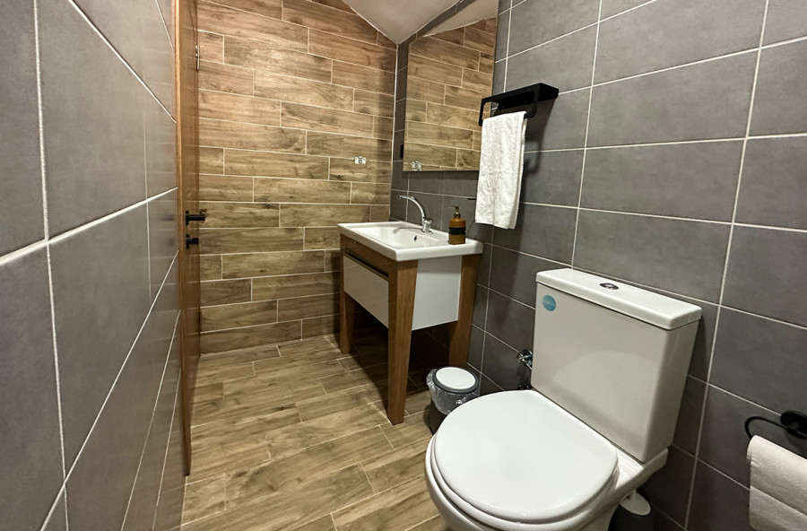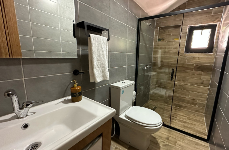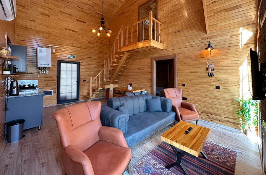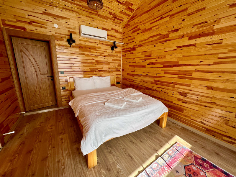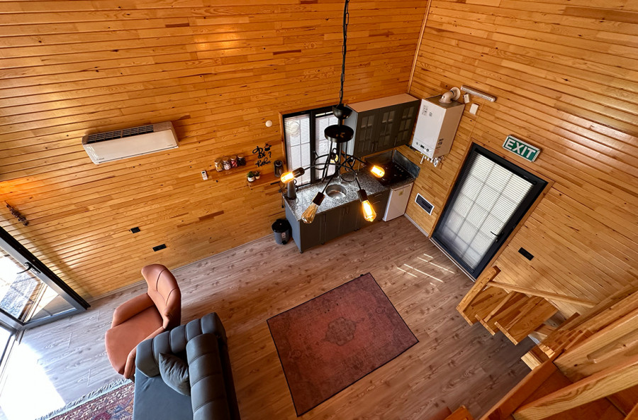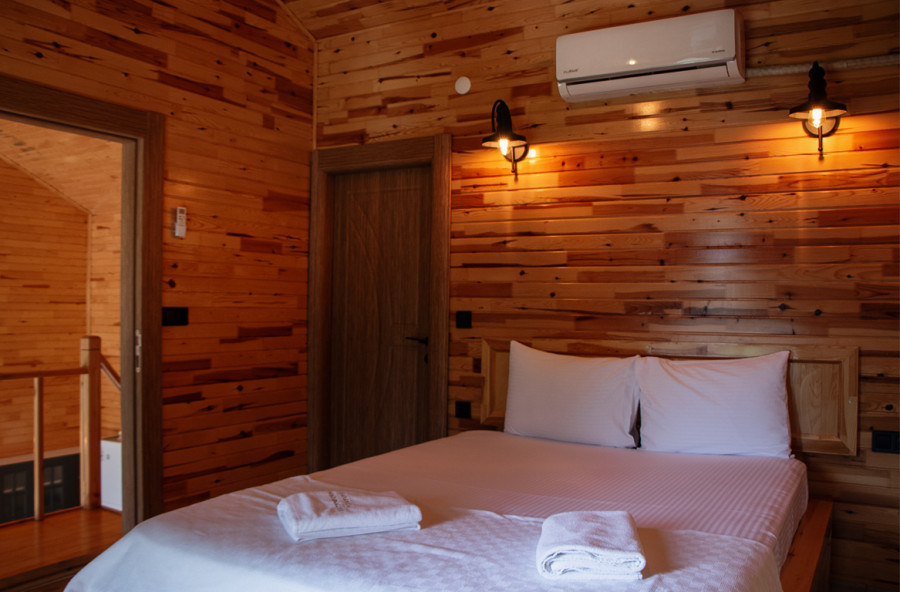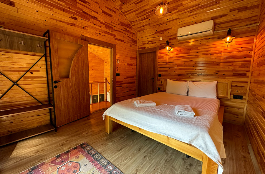 يوجد في الطابق العلوي سرير زوجي وحمام داخلي.