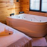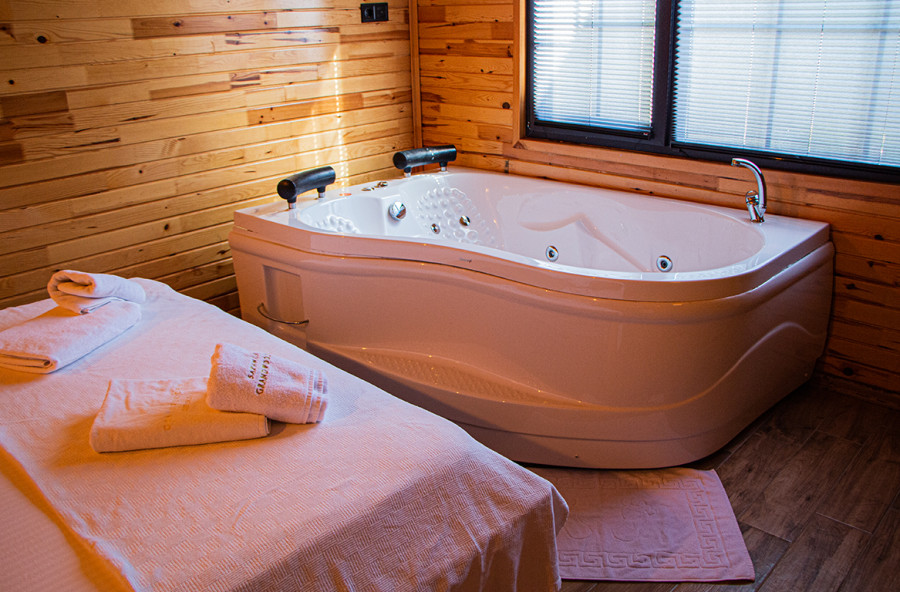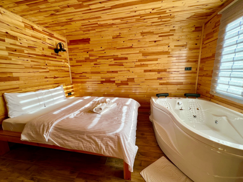 تحتوي الغرفة الموجودة في الطابق الأرضي على سرير زوجي وجاكوزي وحمام داخلي.