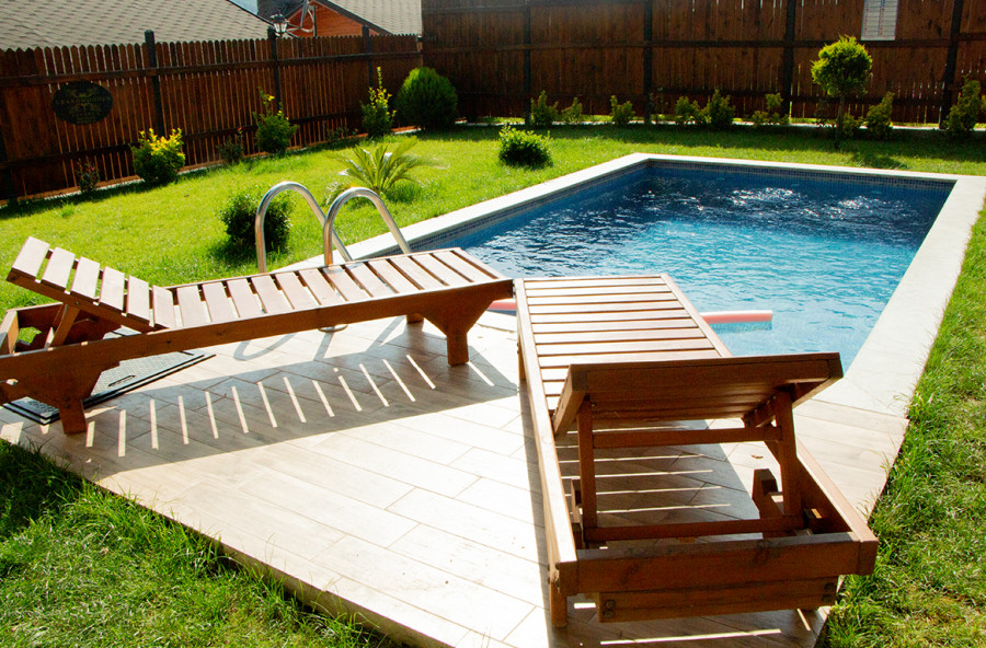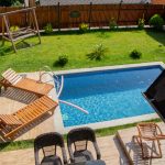 توجد كراسي استلقاء للتشمس وأثاث حدائق