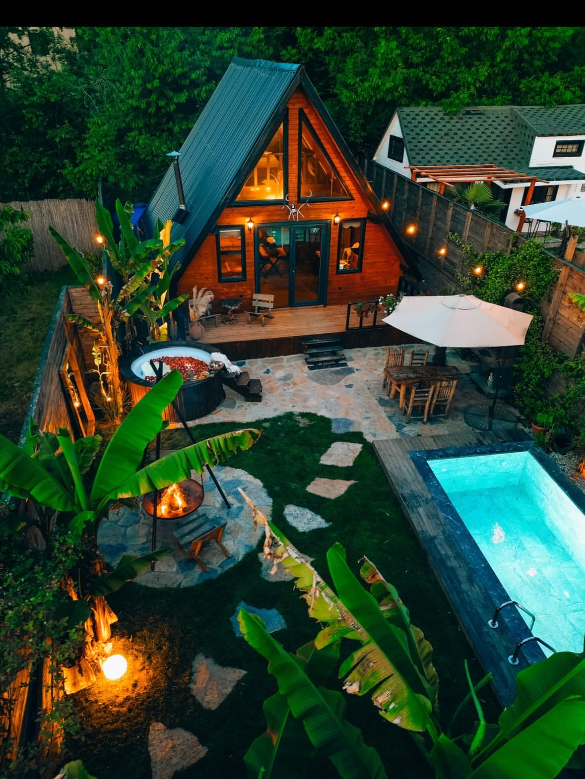 ميزات الغرفة: مدفأة، موقد نار، خدمة إفطار اختيارية، مسبح خاص (نظام تدفئة)، حديقة مستقلة، خدمة غرف، واي فاي، مطبخ (مع الأدوات والمعدات اللازمة)، وخدمات الشواء متوفرة.
