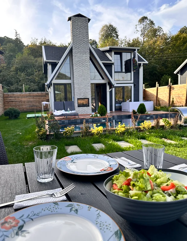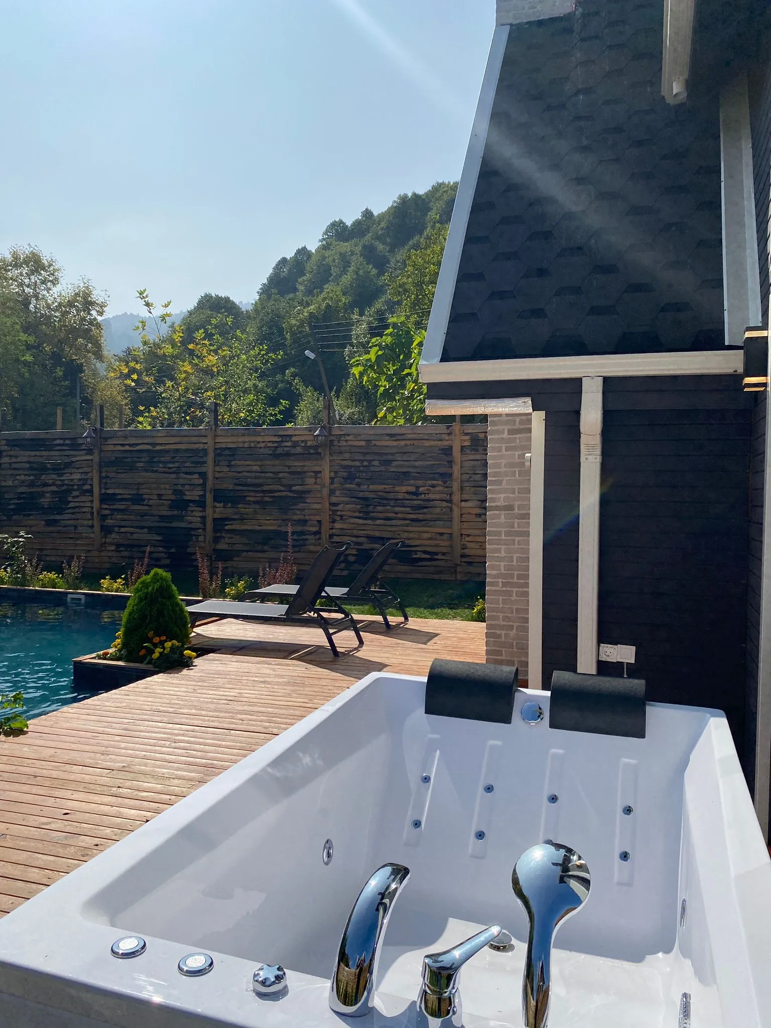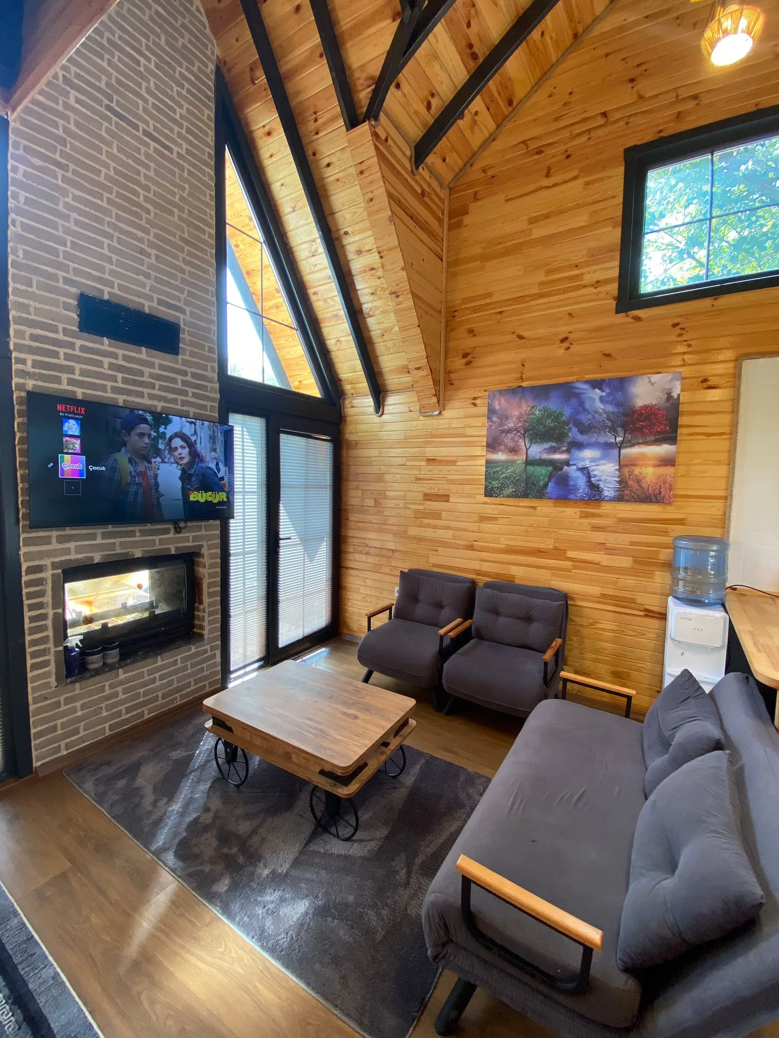 حفرة النار “المرجل”، ادوات الشواء، إطلالة على الطبيعة، جاكوزي، ماكينة القهوة، مكيف ، المطبخ الخاص (مجهز بالكامل)، مجفف الشعر، حوض السباحة الساخن، المدفأة الكلاسيك، التلفزيون، WIFI