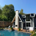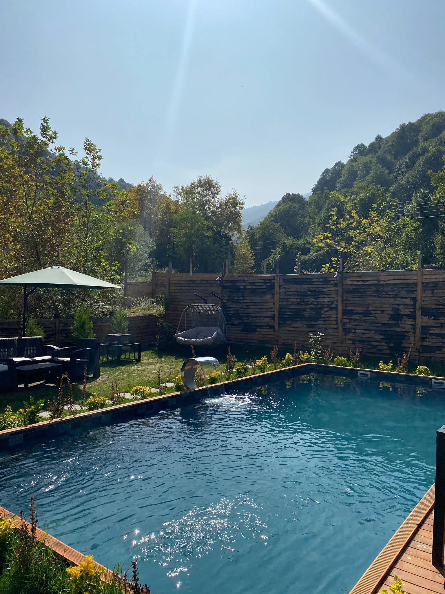 المسبح مستقل (دافئ في فصل الشتاء): عرض 4 أمتار وطول 8 أمتار. العمق 150 سم
