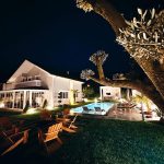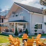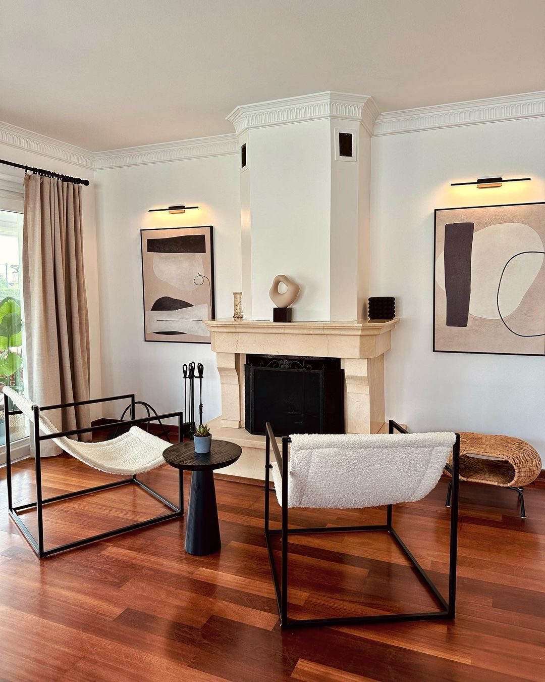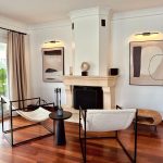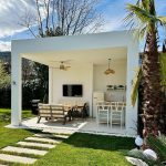 غرفة معيشة ومدفأة كلاسيك في الحديقة