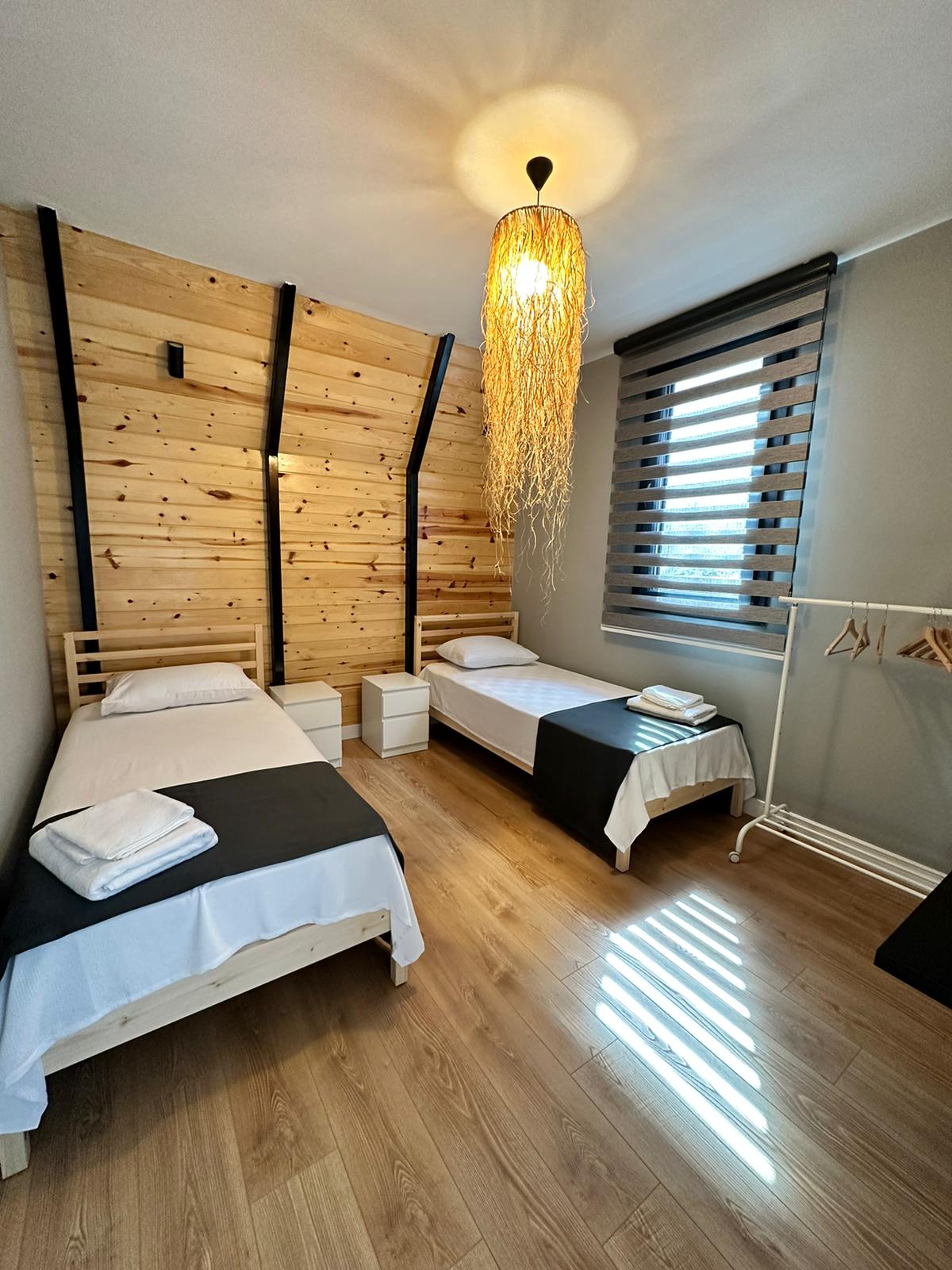 تحتوي الغرفة الموجودة في الطابق الأرضي على سريرين مفردين.