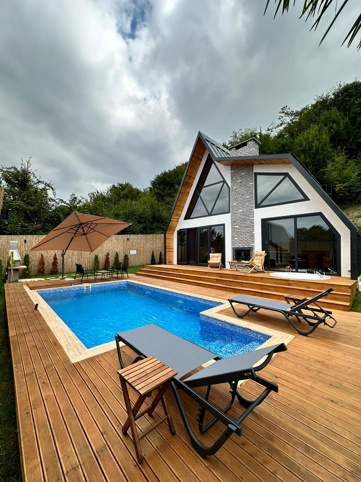 حوض سباحة (دافئ  في فصل الشتاء) وجاكوزي وأثاث حدائق. (4*6م عمق 150)