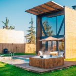 جاكوزي كبير. ( يوجد كوخين يحتويان على جاكوزي في الحديقة وكوخ واحد يحتوي على جاكوزي على السطح)