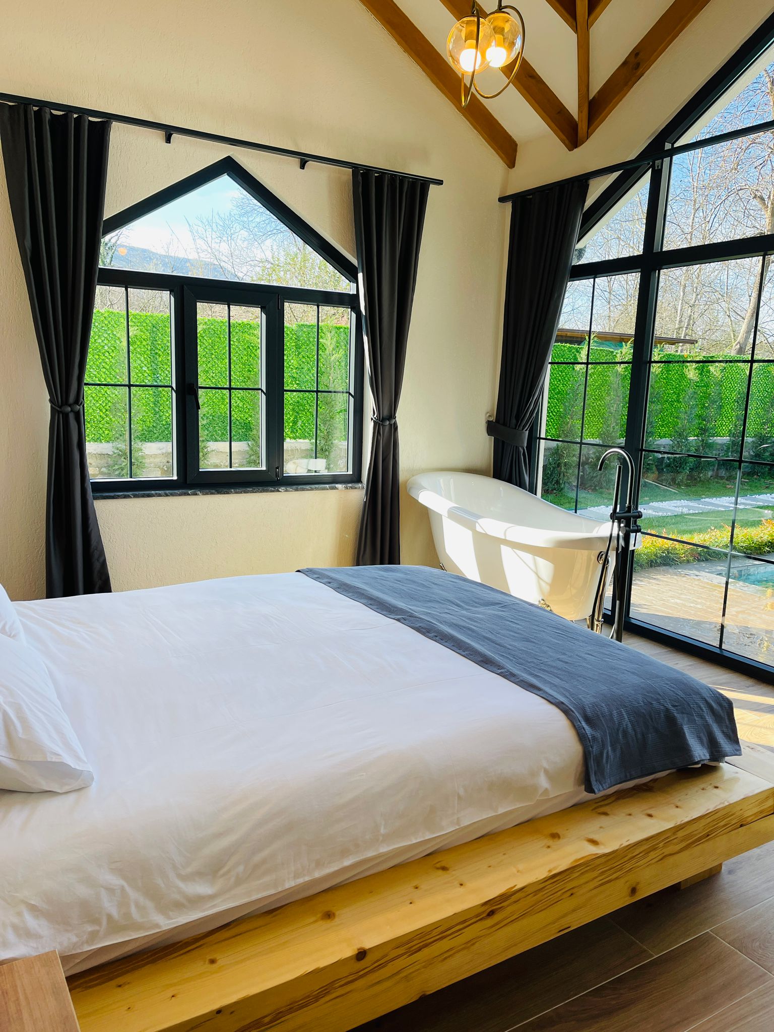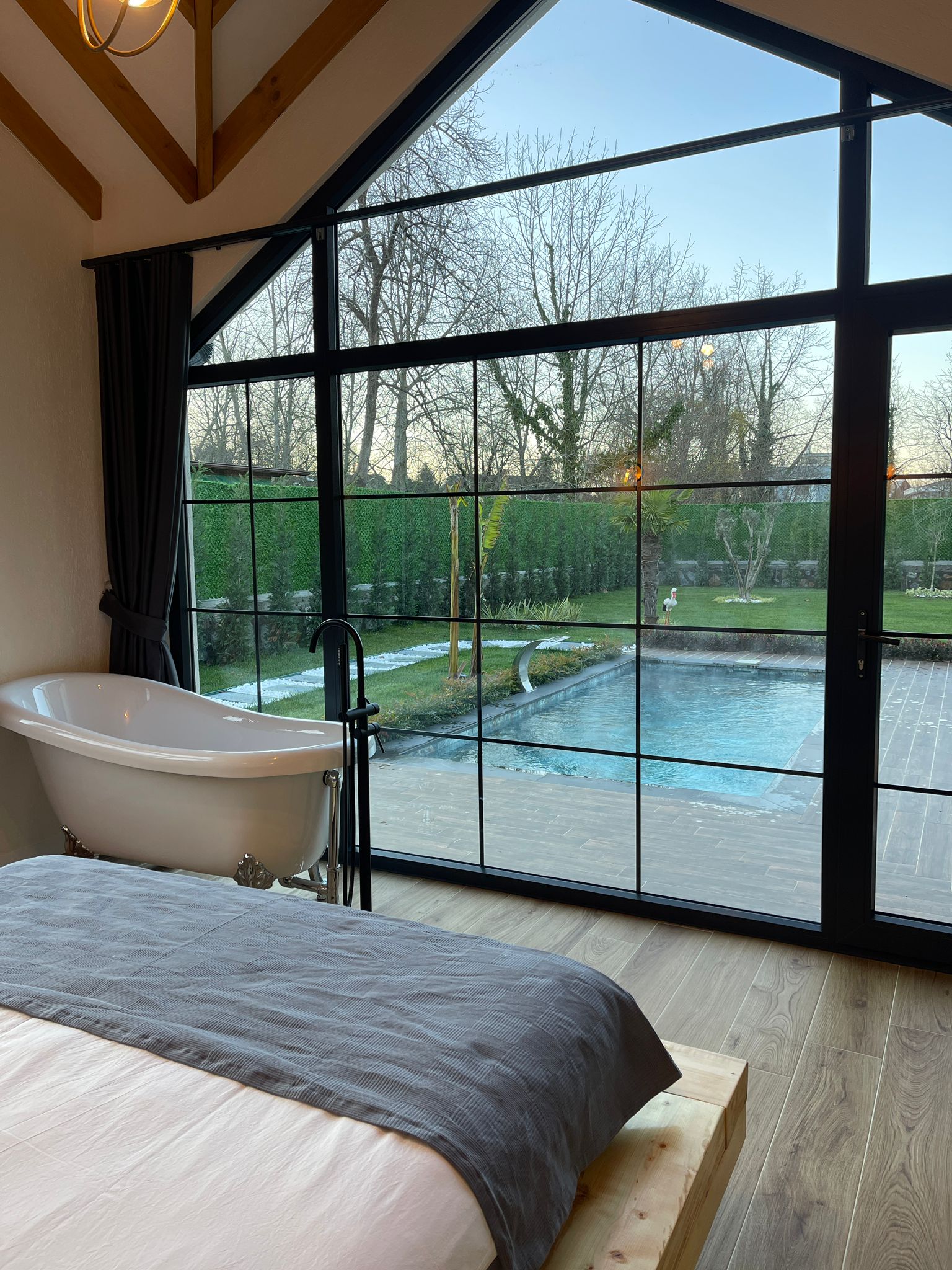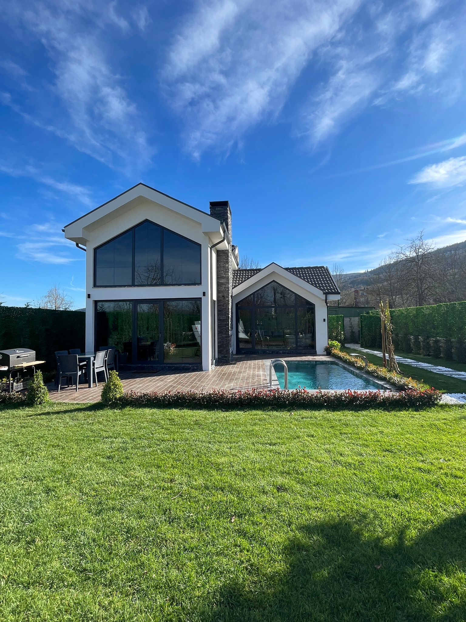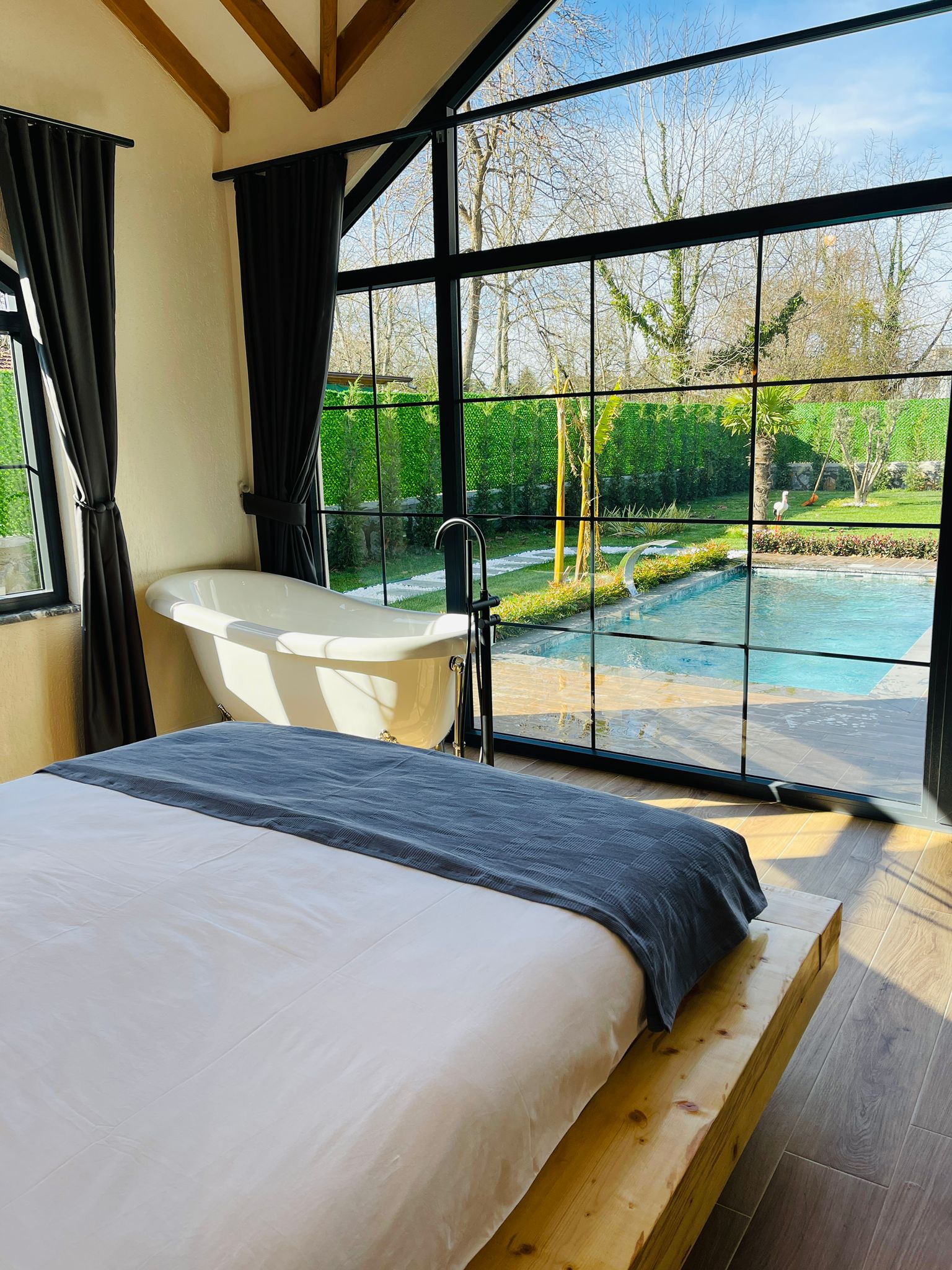 الكوخ من فئة 2+1 مع مسبح مستقل: تتسع لـ 6 أشخاص. يمكن استيعاب الشخص 5.6  على الأريكة.