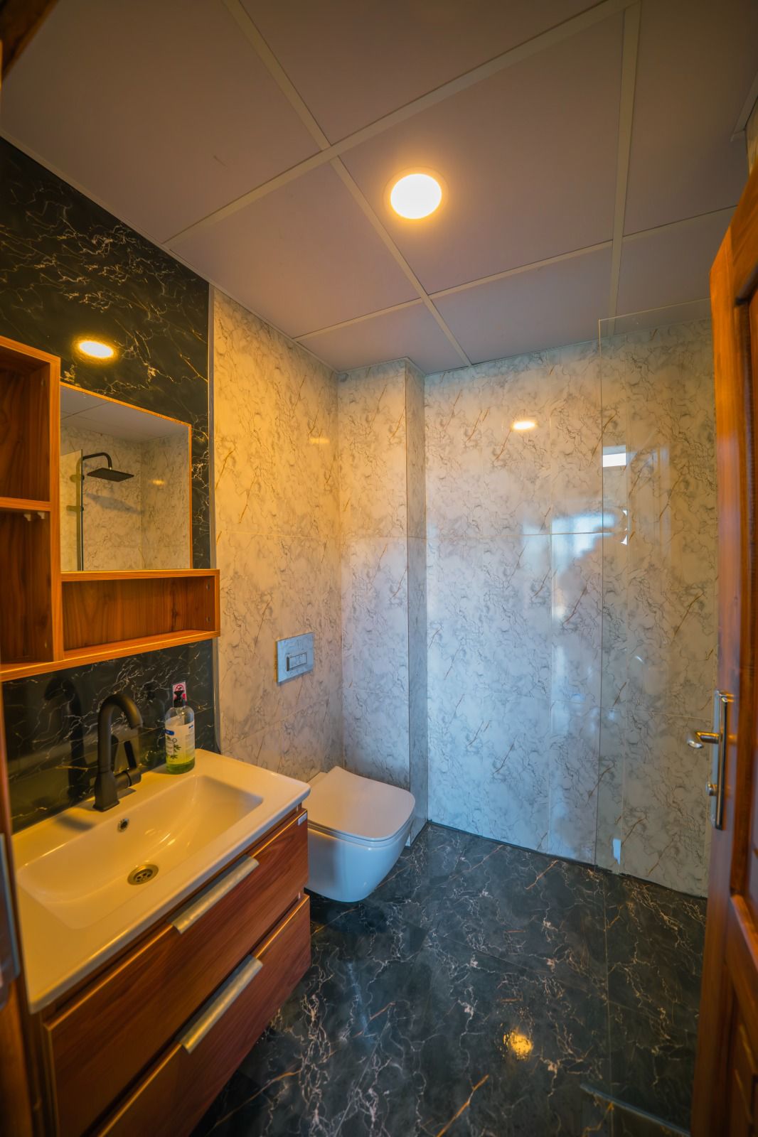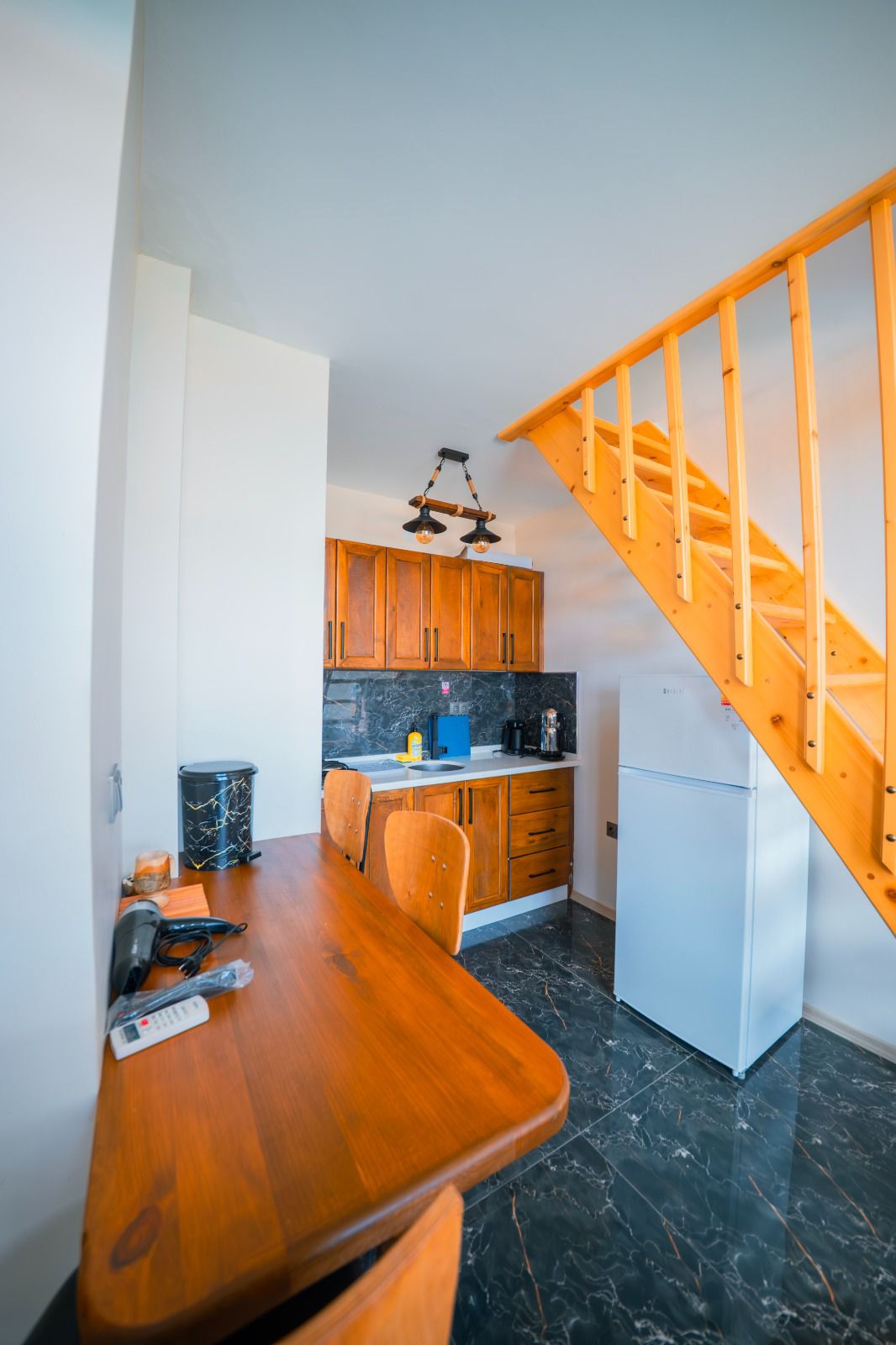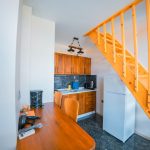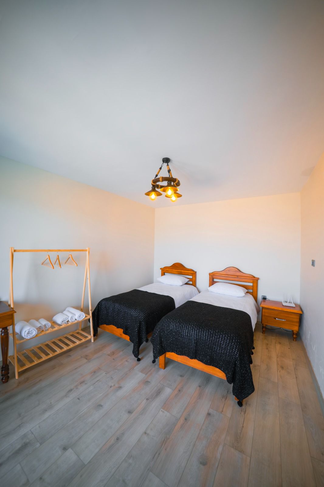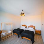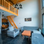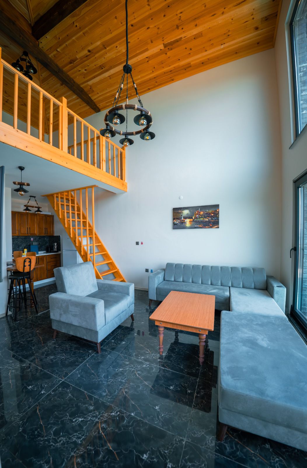 غرف النوم منفصلة ويوجد مناطق للاستحمام والمرحاض في الطابق السفلي والطابق العلوي. يمكن فتح كل من الأريكة الكبيرة والأريكة المفردة لتصبح سريرًا. بهذه الطريقة يمكن استيعاب ما يصل إلى 6-7 أشخاص.
