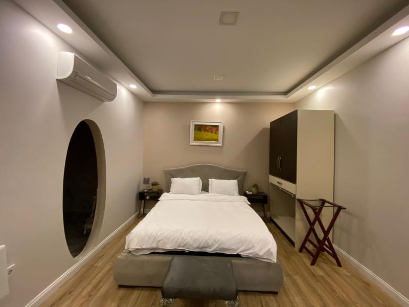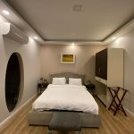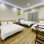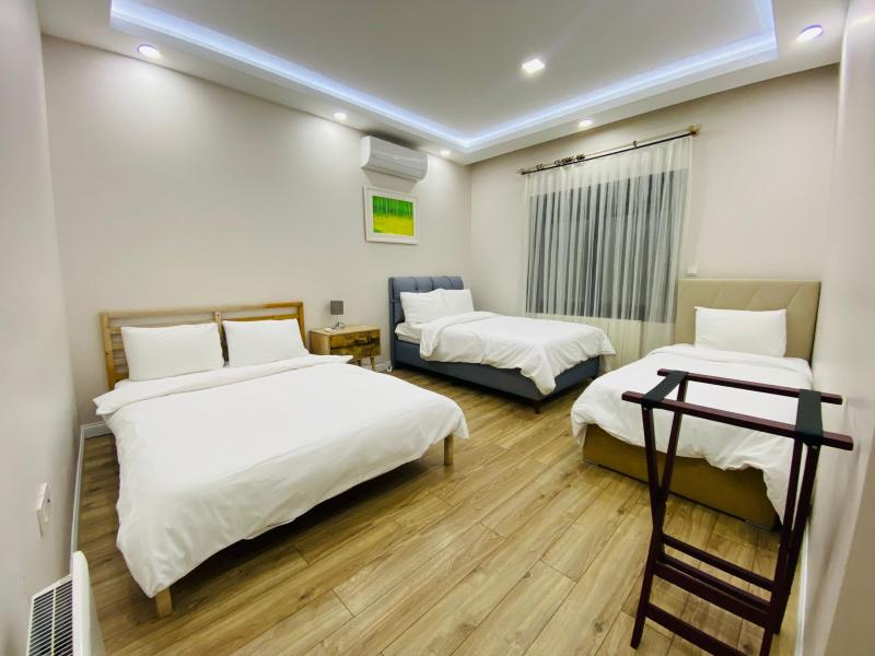 يوجد 3 أسرة مزدوجة وسرير مفرد.