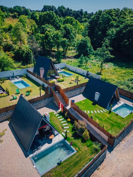يوجد 4 أكواخ في المجمل. كل الأكواخ لديها إطلالة على البحيرة.