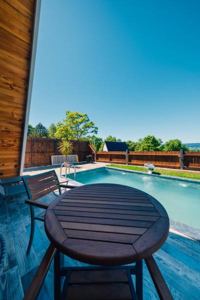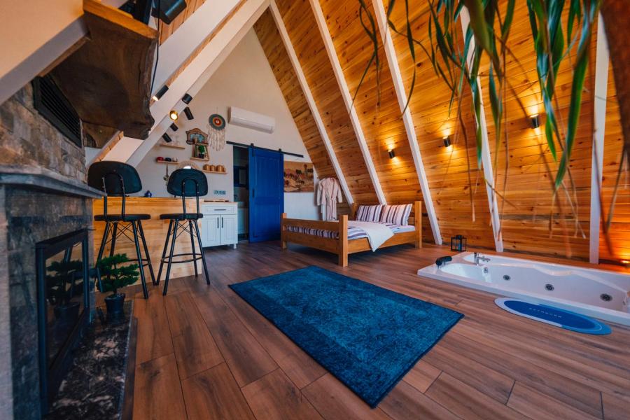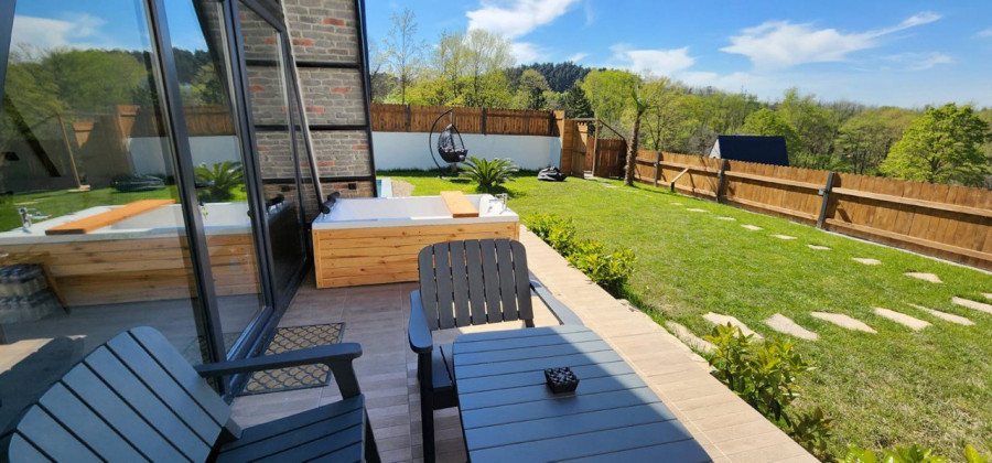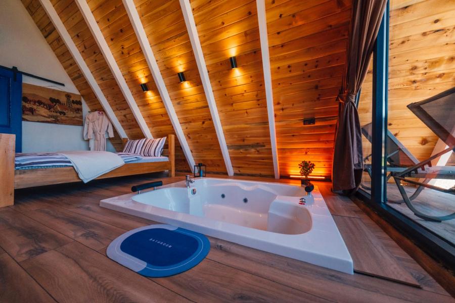 كوخين مع جاكوزي بالحديقة و كوخين مع جاكوزي داخلي.