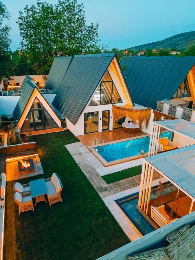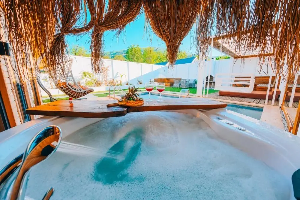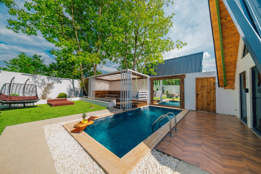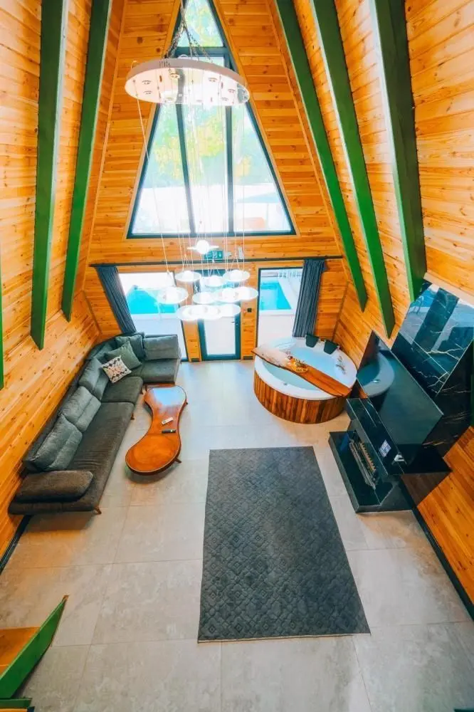 آكواخ 3+1 مع مسبح خاص وجاكوزيين: الحد الأقصى للإشغال 8 أشخاص. يمكن للشخص السابع أو الثامن النوم على الأريكة.