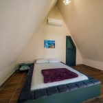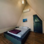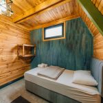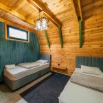 الطابق العلوي: سرير مزدوج. الطابق السفلي: سريران مفردان (يمكن جمعهما عند الرغبة).