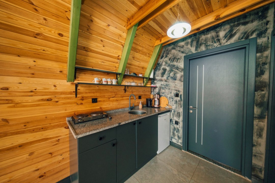 موقد كهربائي، ثلاجة صغيرة، ماكينة شاي، ماكينة قهوة، وأدوات مطبخ أخرى متوفرة.