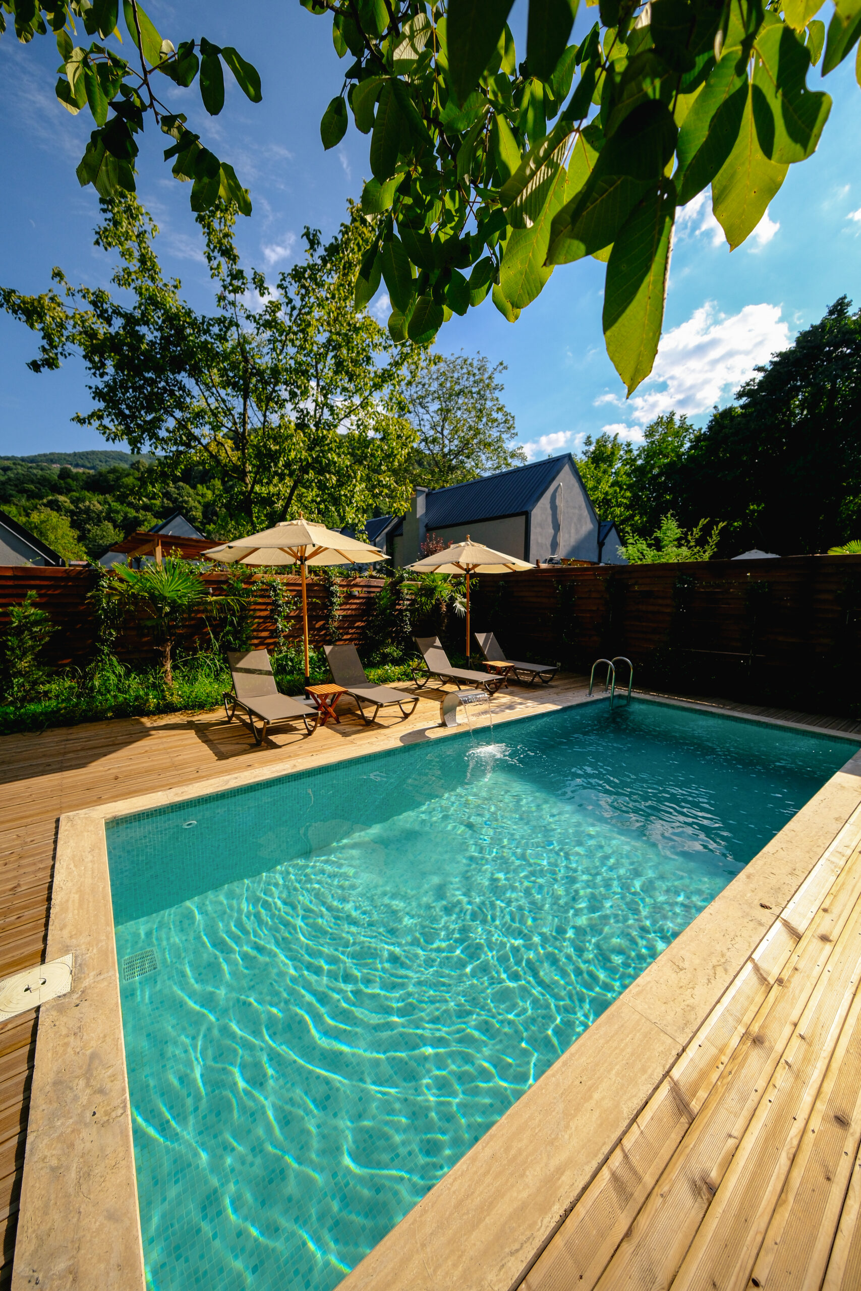 يوجد 6 أكواخ في المجمل من فئة 2+1 مع حوض سباحة خاص.