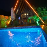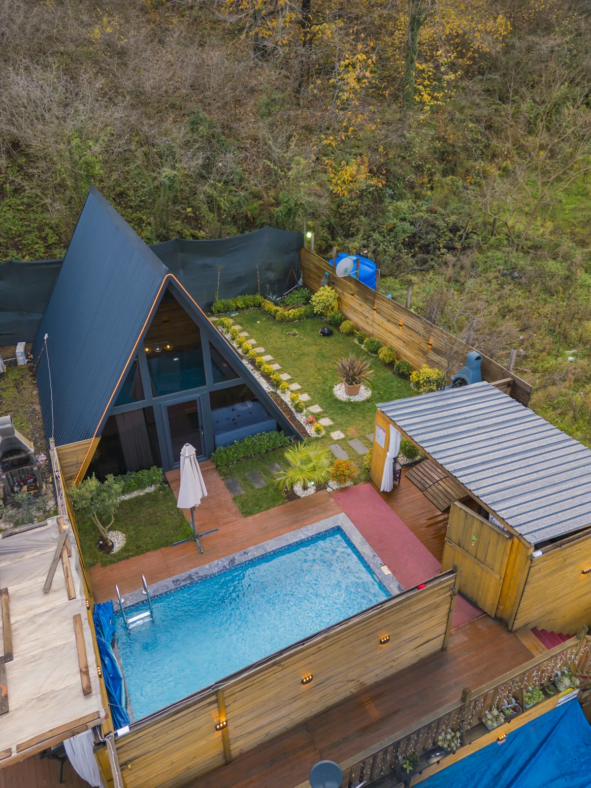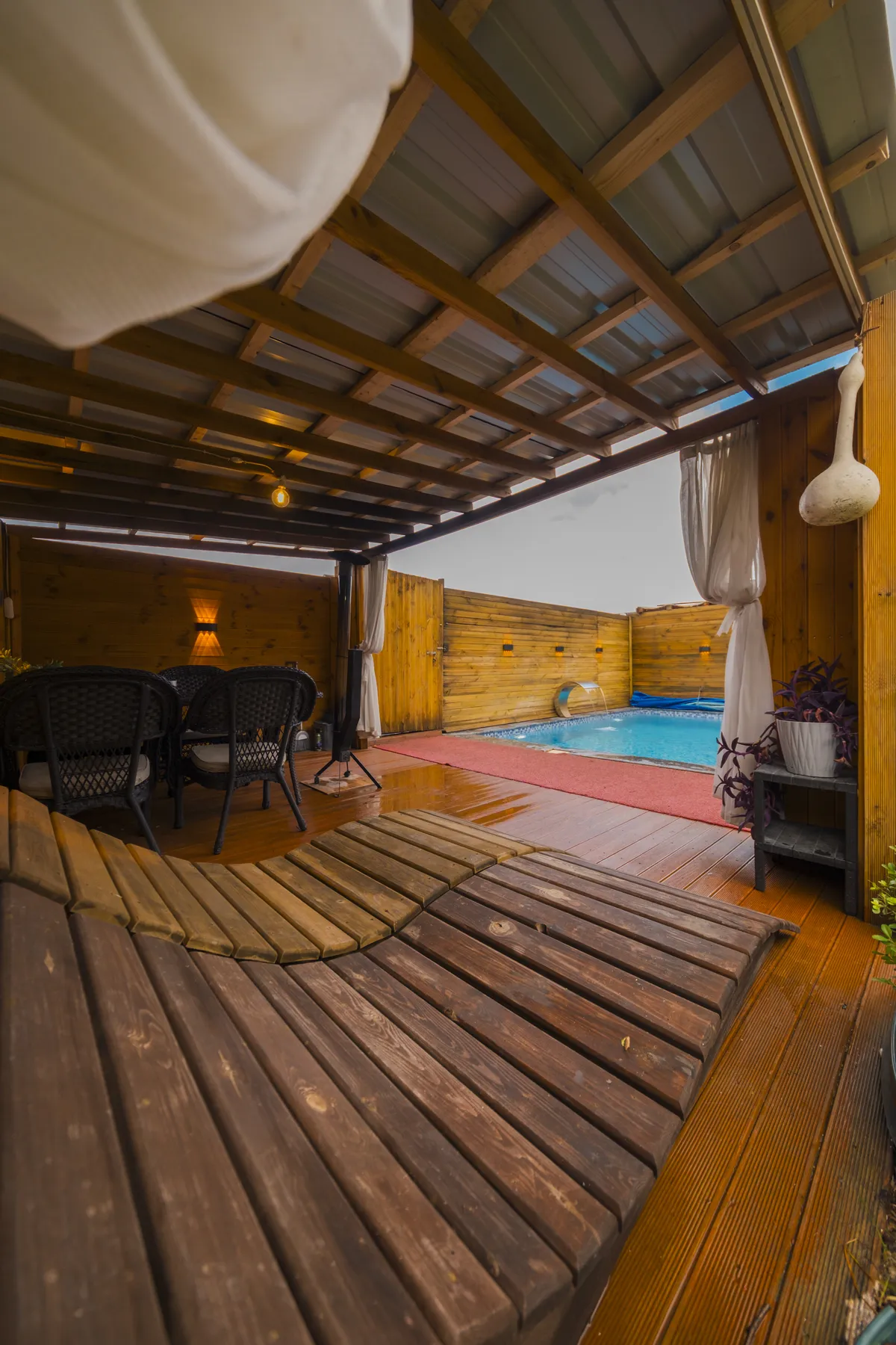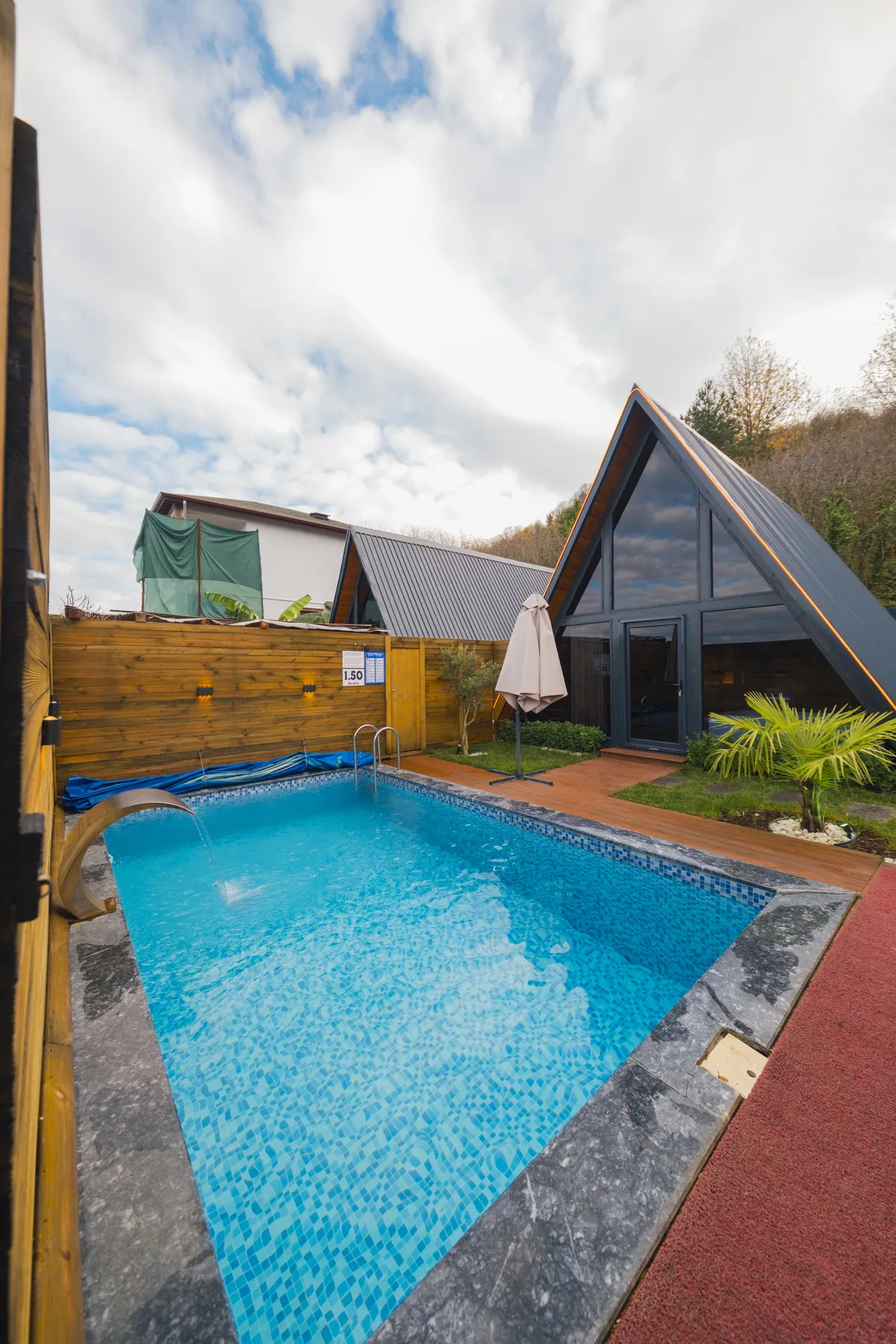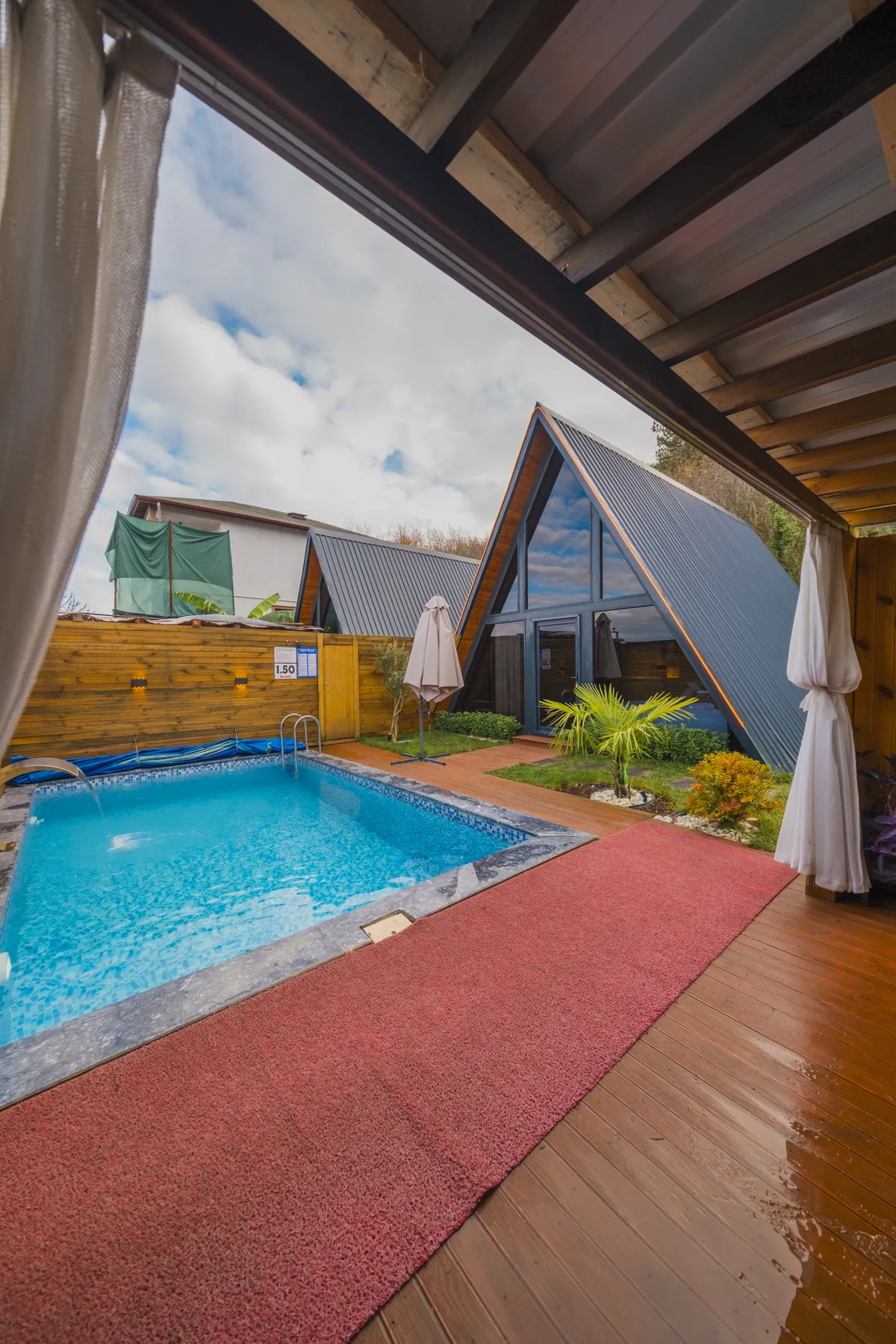 المنتجع يحتوي على 3 أكواخ من فئة 2+1 غرفتين و صالة ، منتجعنا يمنحك عطلات هادئة وخاصة وسط الطبيعة، مع مسبح مُدفأ، مثالي للعائلات.
