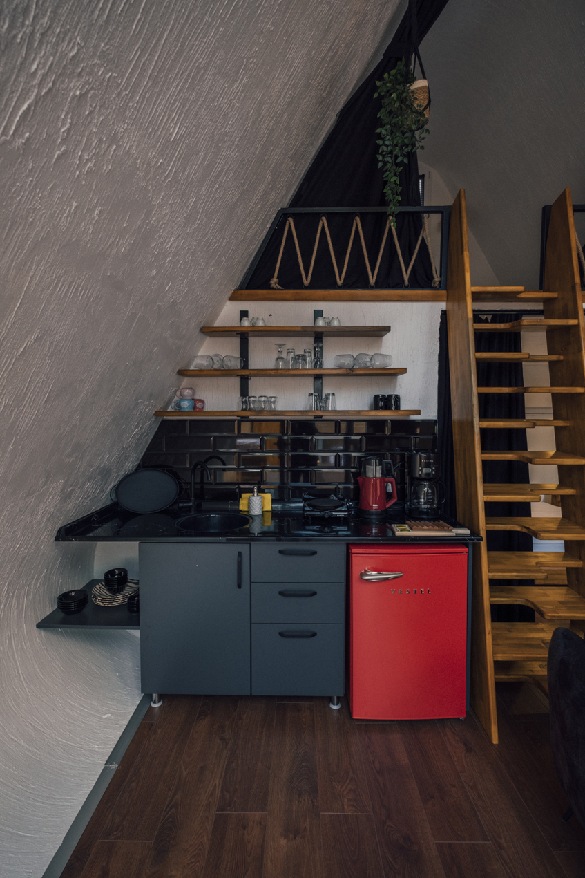 المطبخ مجهز بالأدوات.