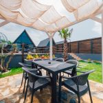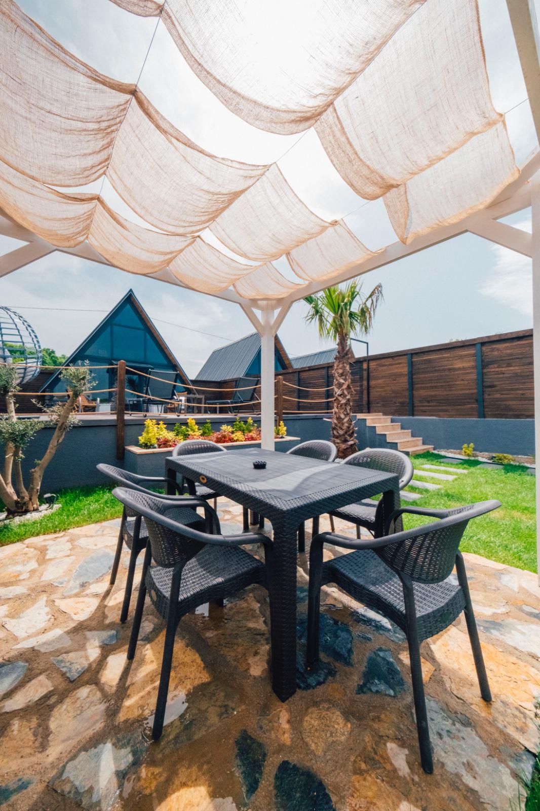 يتوفر أثاث الحدائق والأرجوحة والشواء الحجري وغلاية النار.