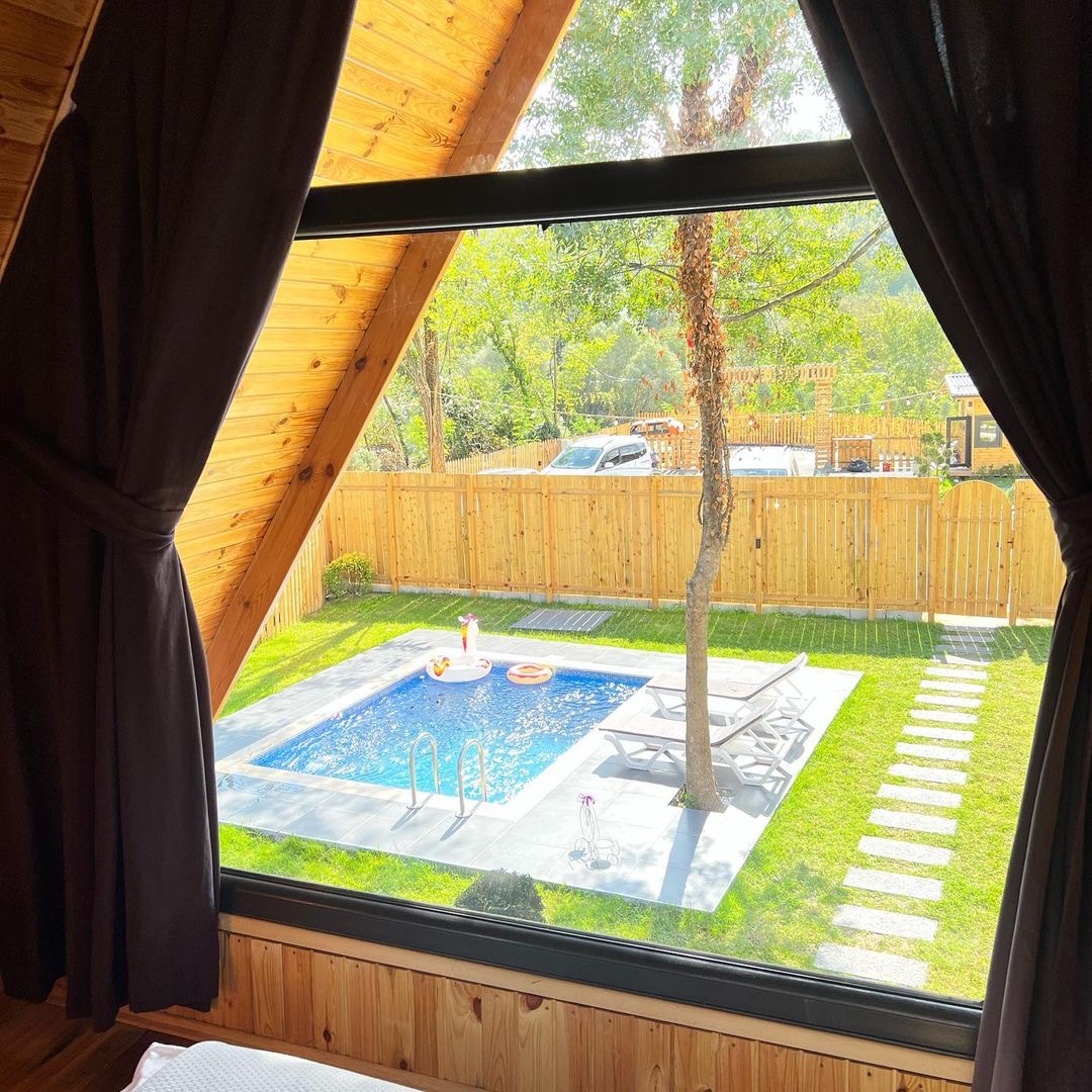 يوجد حوض سباحة (مُدفأ في فصل الشتاء).  (3×5 150 سم) وكراسي استلقاء للتشمس